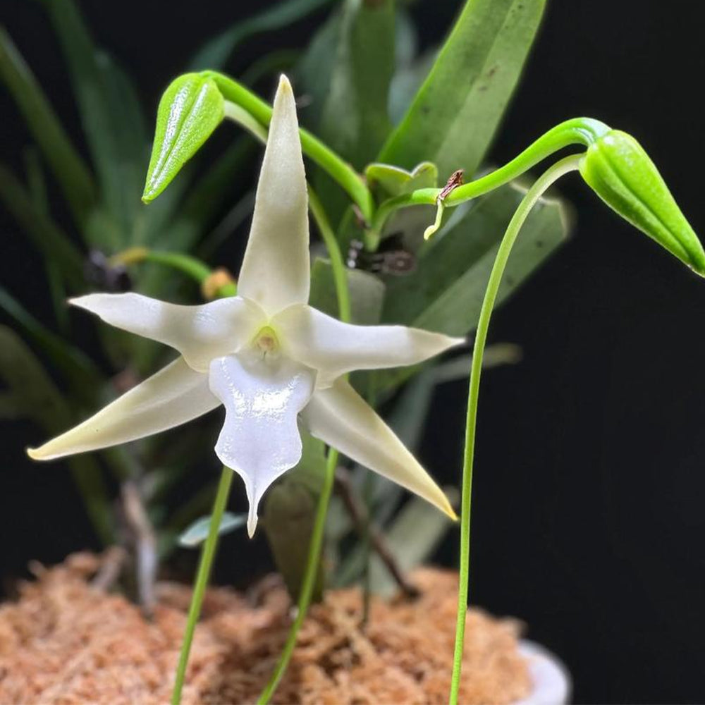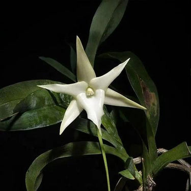 A star-shaped white orchid with a legendary foot-long spur—the “Darwin’s orchid.” Each waxy flower releases a sweet, intoxicating fragrance at night, beckoning hawkmoths from the shadows. A botanical marvel for collectors who appreciate evolutionary wonder and nocturnal elegance.